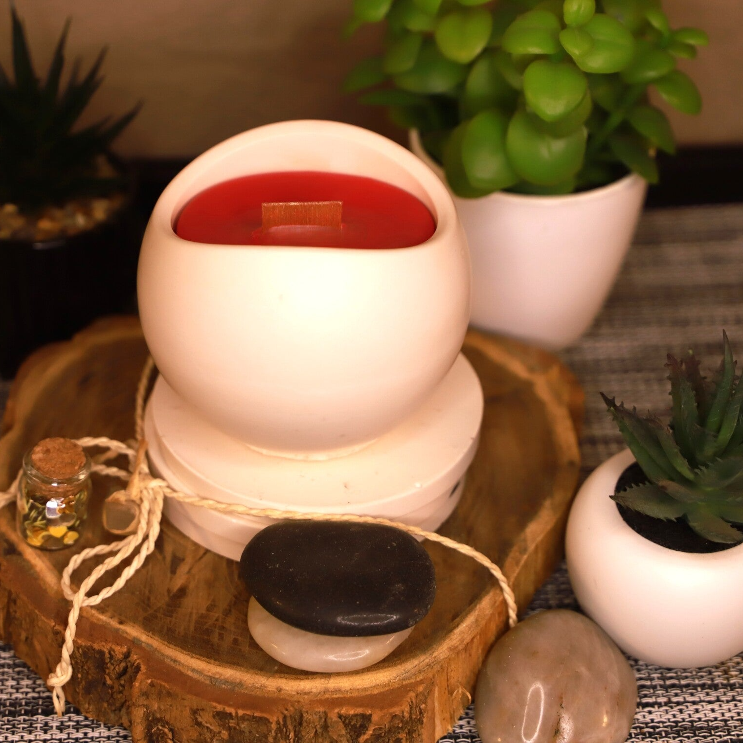 🔴 Fabrication artisanale, en Bretagne. Créée avec des produits sains et de qualités : 100% Cire végétale de Soja et de Colza sans OGM, Parfum de Grasse garantie sans CMR, Mèche en Bois. Pot en Jesmonite fait à la main.