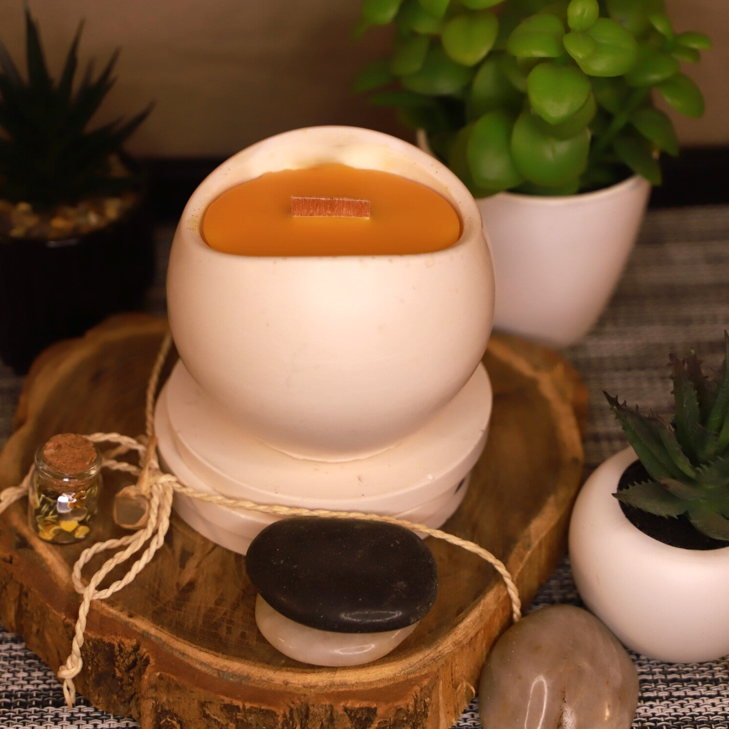 🟠 Fabrication artisanale, en Bretagne. Créée avec des produits sains et de qualités : 100% Cire végétale de Soja et de Colza sans OGM, Parfum de Grasse garantie sans CMR, Mèche en Bois. Pot en Jesmonite fait à la main.